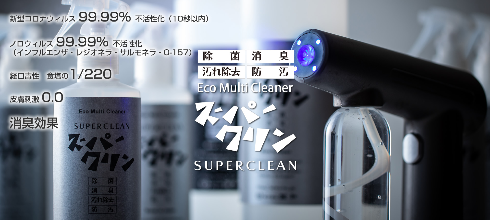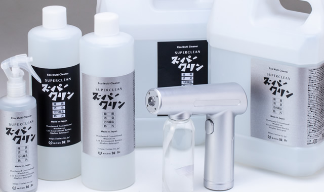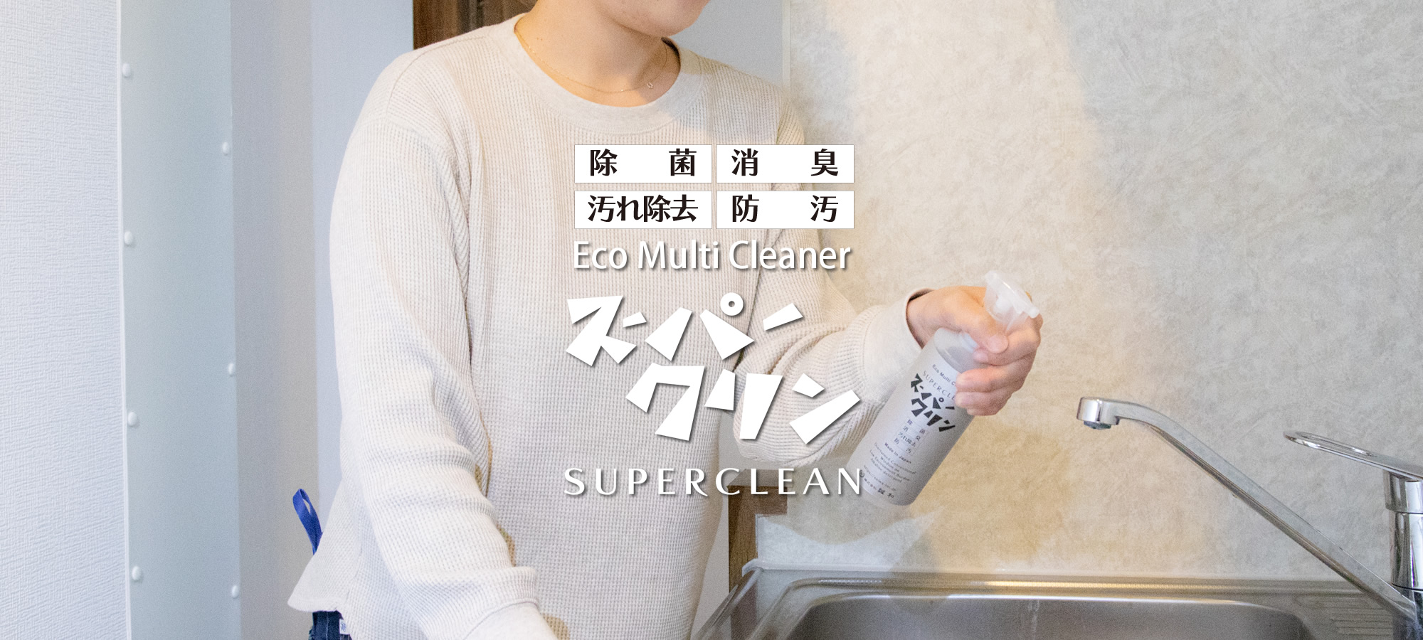 除菌・洗浄・消臭がこれ1本で解決するエコマルチクリーナー≪スーパークリン≫の製品詳細についてはこちらから。
